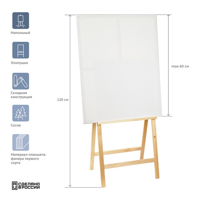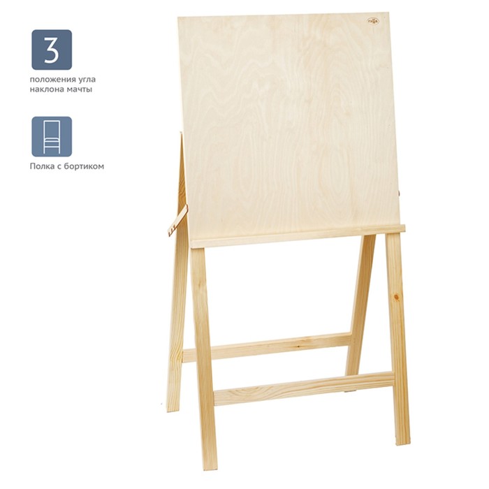 Мольберт тип «Лира» 175 х 62 см, планшет 70 х 50 мм, полка 66 х 12 см, с бегунком, неокрашенное дерево, Calligrata