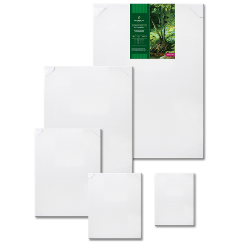 УЦЕНКА-Набор холстов на подрамнике Greenwich Line, 5шт., прямоугольные, 100% хлопок, 380г/м2, среднее зерно
