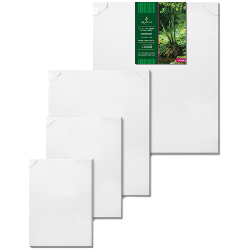 Набор холстов на подрамнике Greenwich Line, 4шт., прямоугольные, 100% хлопок, 280г/м2, мелкое зерно