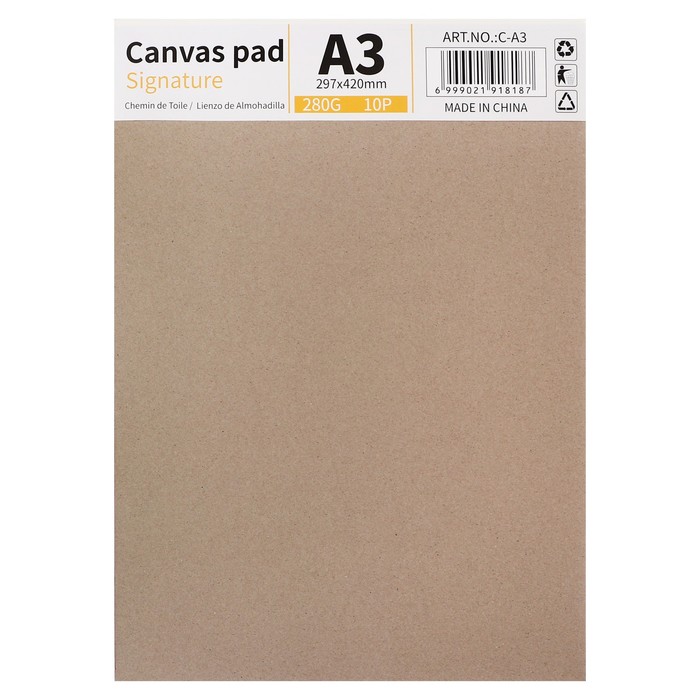 Холст на оргалите 10х10см, 4мм, хлопок 100%, акриловый грунт, мелкое зерно 210г/м2, в наборе 3 штуки