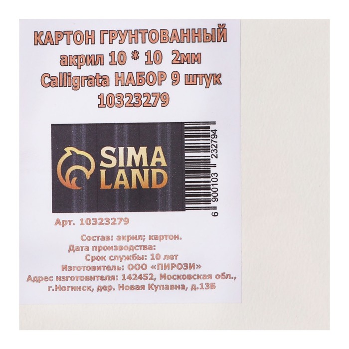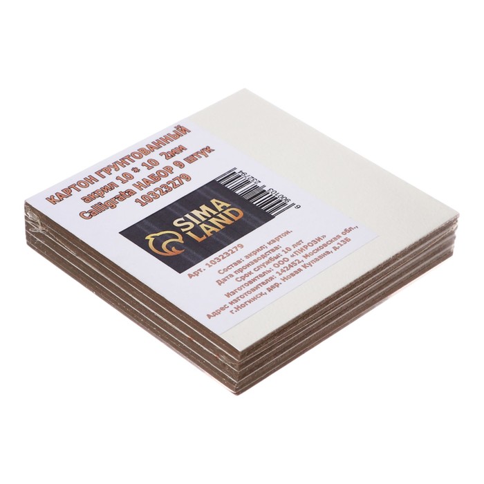 Холст на оргалите 10х10см, 4мм, хлопок 100%, акриловый грунт, мелкое зерно 210г/м2, в наборе 3 штуки