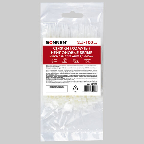 Стяжки (хомуты) нейлоновые SONNEN используются при проведении электромонтажных работ для крепления кабелей, проводов и других предметов к несущей поверхности или для соединения между собой. Такие стяжки также используются для бытовых и хозяйственных нужд.
