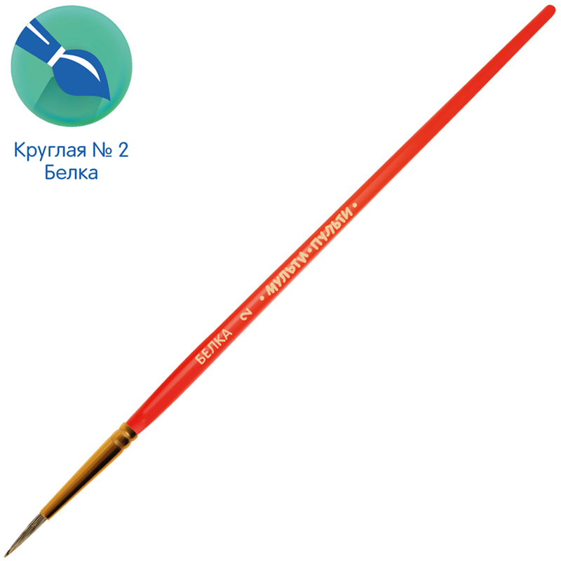Кисть круглая № 2 «Мульти-Пульти» предназначена для детей с начальным и средним уровнем подготовки. Используемый натуральный волос белки обладает капиллярным эффектом, поэтому кисть можно использовать в том числе для акварельных красок. Форма обоймы − круглая.