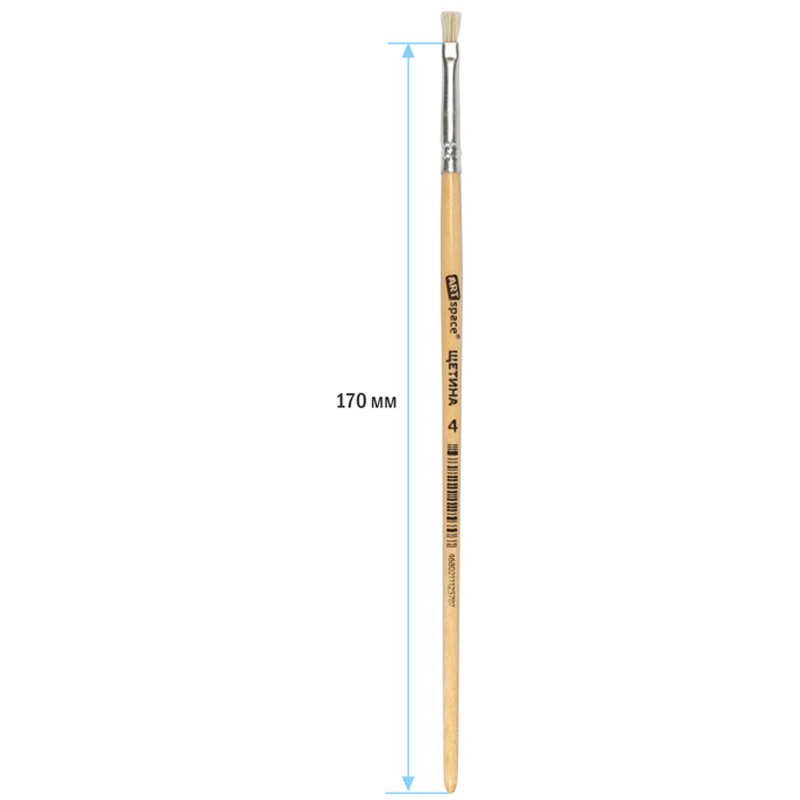 Художественные кисти ArtSpace изготовлены из качественной щетины. Изделие даже после продолжительного использования не теряет форму. Ещё одним важным свойством является расщеплённый кончик, который способствует хорошей наполняемости кисти и ровному нанесению краски. Кисть плоской формы с короткой ручкой из дерева предназначена для работ с «тяжёлыми красками»: маслом, акрилом, темперой, гуашью. Натуральные кисти из щетины - отличный инструмент как для детского и школьного творчества, так для хобби и профессиональной живописи. Ручка кисти изготовлена из берёзы и покрыта глянцевым лаком. <br/><br/>• Волос: щетина; <br/>• Номер: 4;<br/>• Форма кисти: плоская;<br/>• Тип ручки: короткая;<br/>• Материал ручки: дерево.