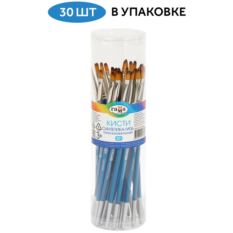 Художественные кисти ГАММА серии «Классическая» идеально подходят для детского творчества. Кисть плоскоовальной формы № 6 с короткой ручкой из берёзы, покрытой глянцевым лаком. <br/>Кисти из синтетического волоса серии «Классическая» являются аналогом кистей из натурального колонка и белки по параметрам жёсткости и эластичности. Синтетический волос на основе сложных полиэфирных волокон имеет гладкую структуру и обладает капиллярным эффектом, что позволяет использовать такие кисти при работе с акварелью. Кисть представлена с цельнометаллической никелированной бесшовной обоймой, обеспечивающей надёжное соединение ручки и волосяного пучка.<br/>• Номер: 6;<br/>• Форма кисти: плоскоовальная;<br/>• Волос: синтетика;<br/>• Тип ручки: короткая;