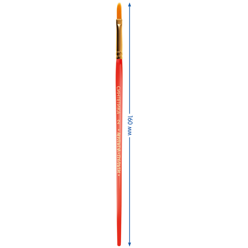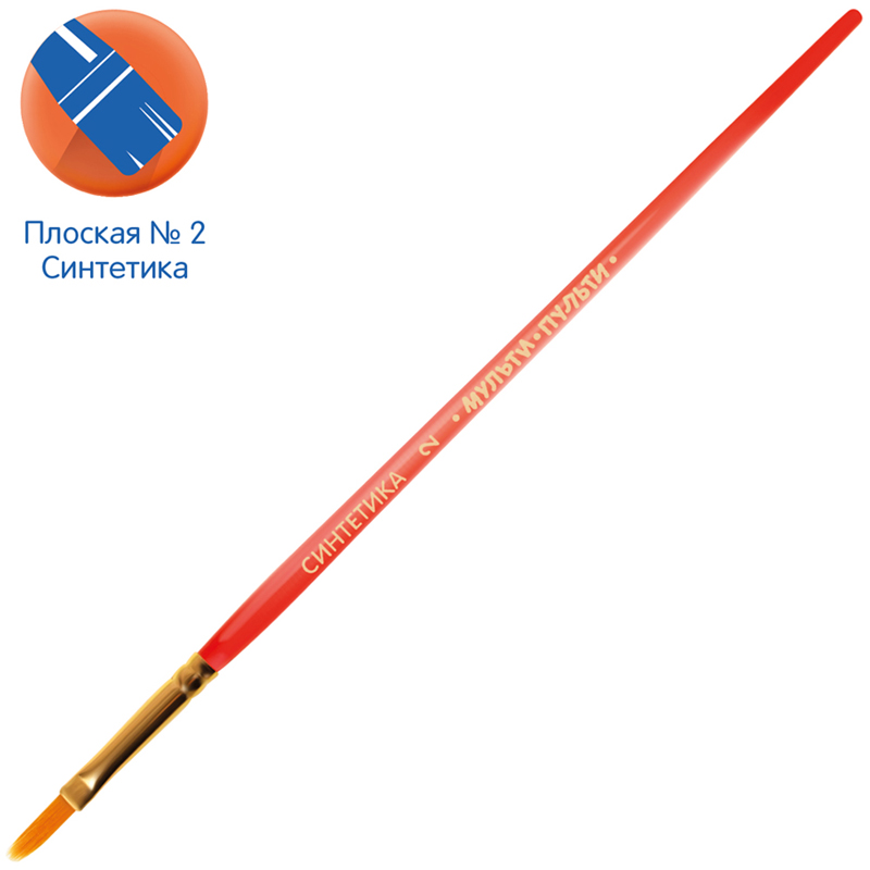 Кисть плоская № 2 «Мульти-Пульти» предназначена для детей с начальным и средним уровнем подготовки. Используемый синтетический волос обладает капиллярным эффектом, поэтому кисть можно использовать в том числе для акварельных красок. Форма обоймы − плоская.