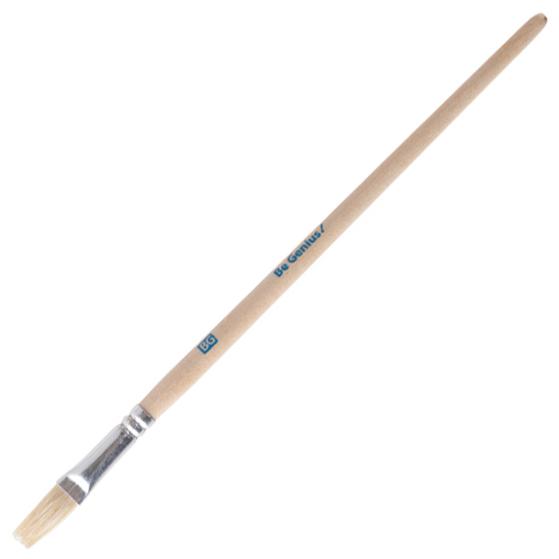 Художественные кисти BG изготовлены из щетины плоской формы. Номер кисти – 8. Короткая ручка выполнена из натурального необработанного дерева.