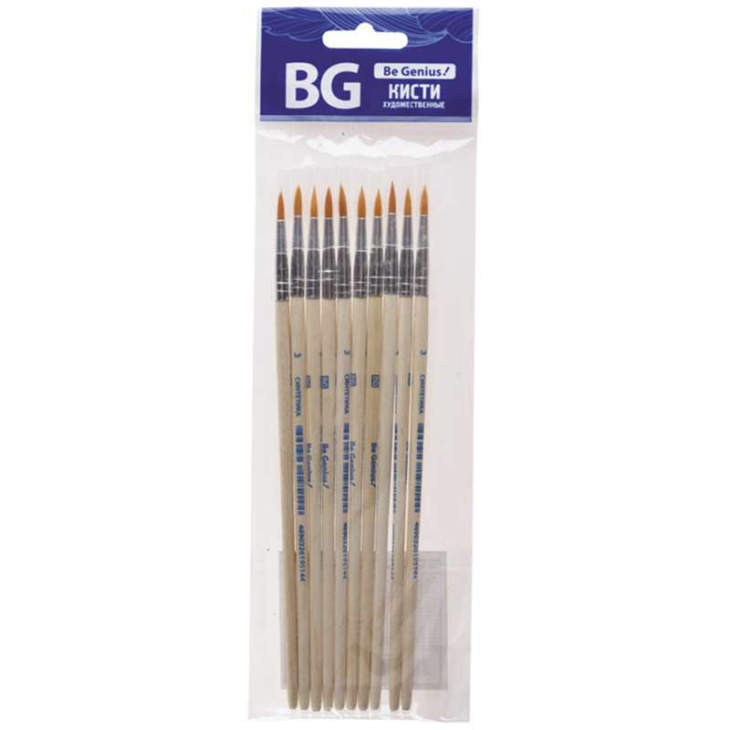 Кисти набор 10 шт., синтетика, белые, № 2/0-8, (Круглые; Овальные; Плоские; Лайнеры),WBZ, 201087
