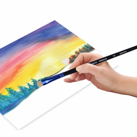Кисть из щетины BRAUBERG PREMIUM прекрасно подходит для работы густыми красками: гуашь, акрил, масло, темпера.