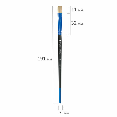 Кисть с плоской формой пучка № 6 позволит прорисовывать детали и наносить крупные мазки и линии. Пучок из щетины обладает высокой упругостью, хорошо держит форму. Ручка из древесины покрыта лаком, что защищает ее от воздействия красок и влаги – кисть долговечна и надежна. Номер кисти соответствует реальной ширине пучка в миллиметрах.