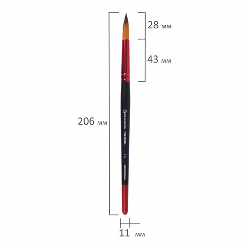 Кисть с круглой формой пучка № 10 позволит прорисовывать детали и наносить крупные мазки и линии. Изготовлена с применением высококачественной синтетики. Синтетика превосходит щетину в легкости очистки и износостойкости, а упругость ворса и прекрасные впитывающие свойства пучка обеспечивают идеальное сохранение формы мазка. Ручка из древесины покрыта лаком, что защищает ее от воздействия красок и влаги – кисть долговечна и надежна. Номер кисти соответствует реальной ширине пучка в миллиметрах.