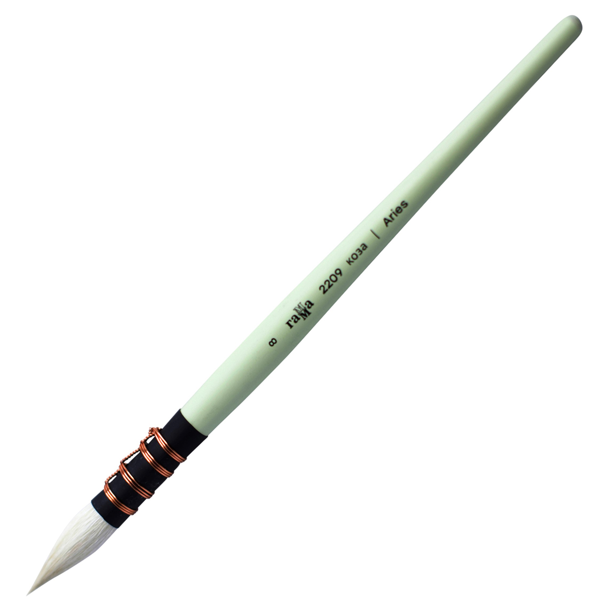 Кисть художественная коза Гамма "Aries", круглая №8, французское крепление, короткая ручка