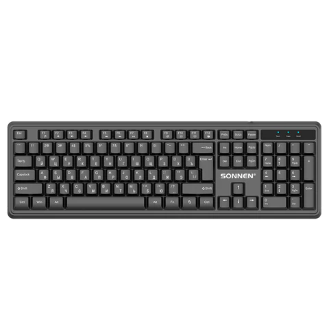 Беспроводная клавиатура SONNEN 1065, имеет современный дизайн, а также оснащена бесшумными клавишами, которые позволяют сфокусироваться на работе за компьютером и ноутбуком. Для начала работы необходимо лишь установить наноресивер в свободный USB-порт.