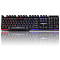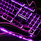 Имеет классическую раскладку - 104 клавиши. Корпус выполнен из ударопрочного ABS-пластика черного цвета. Снабжена LED-подсветкой, пользователь может выбрать один из 3-х цветов (красный, синий, фиолетовый), либо отключить подсветку. С помощью "F" клавиш можно использовать дополнительные мультимедийные функции, которые можно включать, используя функциональные клавиши клавиатуры (F1 - F12).Размер клавиатуры - 145x448x32. Подключение через USB-разъем. Длина кабеля - 1,2 м. Вес - 0,682 кг.