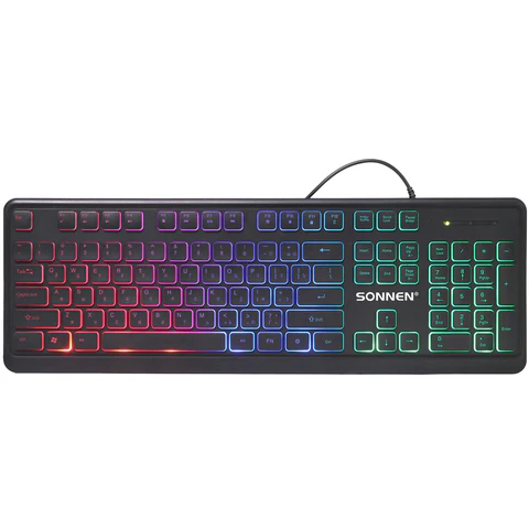 Клавиатура проводная USB, 104 клавиши, LED-подсветка, SONNEN K305, черная, 513948