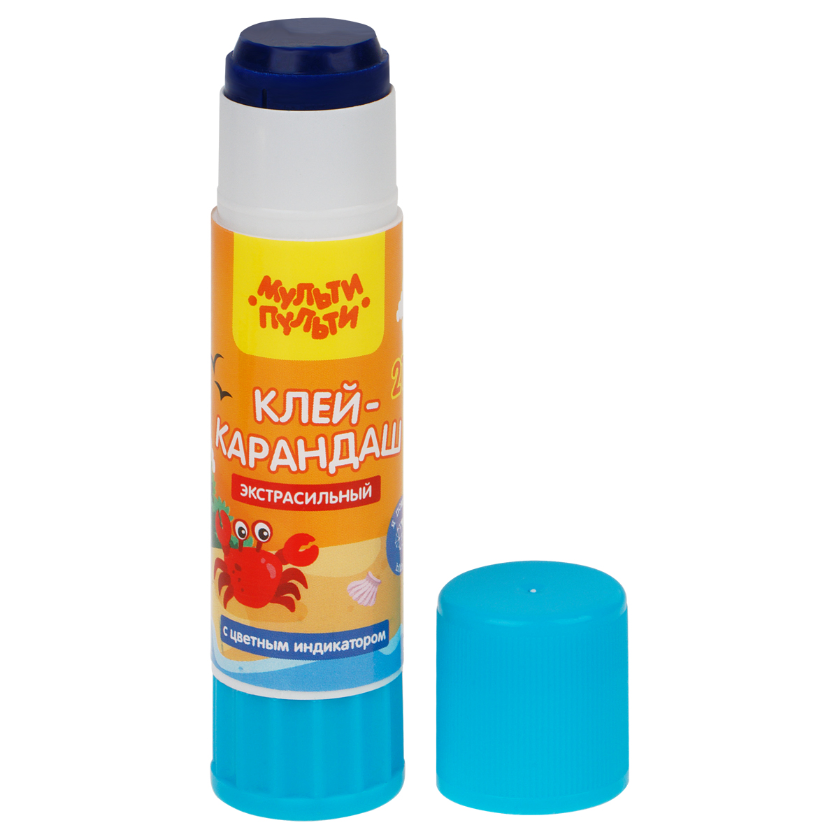 Экстрасильный клей-карандаш «Мульти-Пульти» серии «Енот на Кубе» – незаменимый помощник на уроках труда и занятиях творчеством! Вес нетто – 21 грамм. При нанесении оставляет цветной след, который исчезает по мере высыхания. Благодаря синему индикатору малыш сможет точно и аккуратно наносить клей. Экстрасильная формула на основе ПВП позволяет хорошо склеивать изделия из бумаги, картона, ткани, фотографии. Клей нетоксичен, быстро сохнет, не содержит растворителей, не имеет неприятного запаха и легко смывается с рук водой. Надёжный колпачок предохраняет от высыхания. После использования плотно закрыть крышку. Не рекомендуется детям до 3-х лет. Безопасен при использовании по назначению. Хранить при температуре 0°С-23°С. Срок годности 36 месяцев.<br/>• Вес: 21 г;<br/>• Морозоустойчивость: да;<br/>• Наличие индикатора: да.
