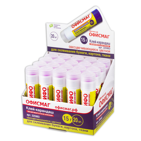 Обесцвечивающийся клей-карандаш ОФИСМАГ идеально подходит для аккуратного нанесения на склеиваемую поверхность. Идеально подходит для офиса, дома и школы.