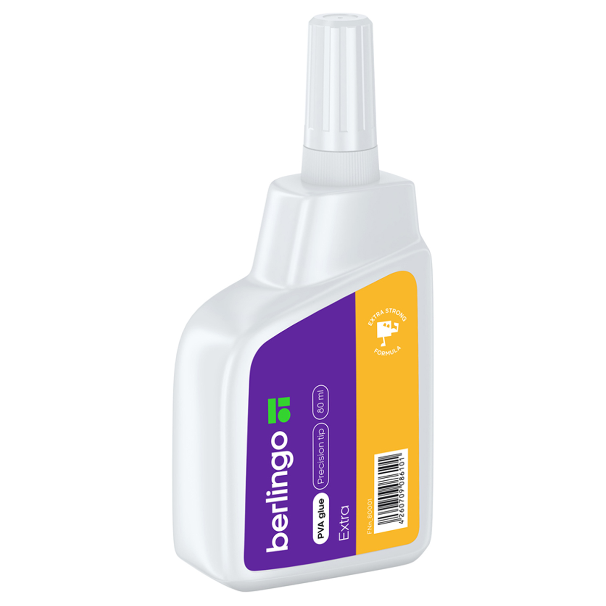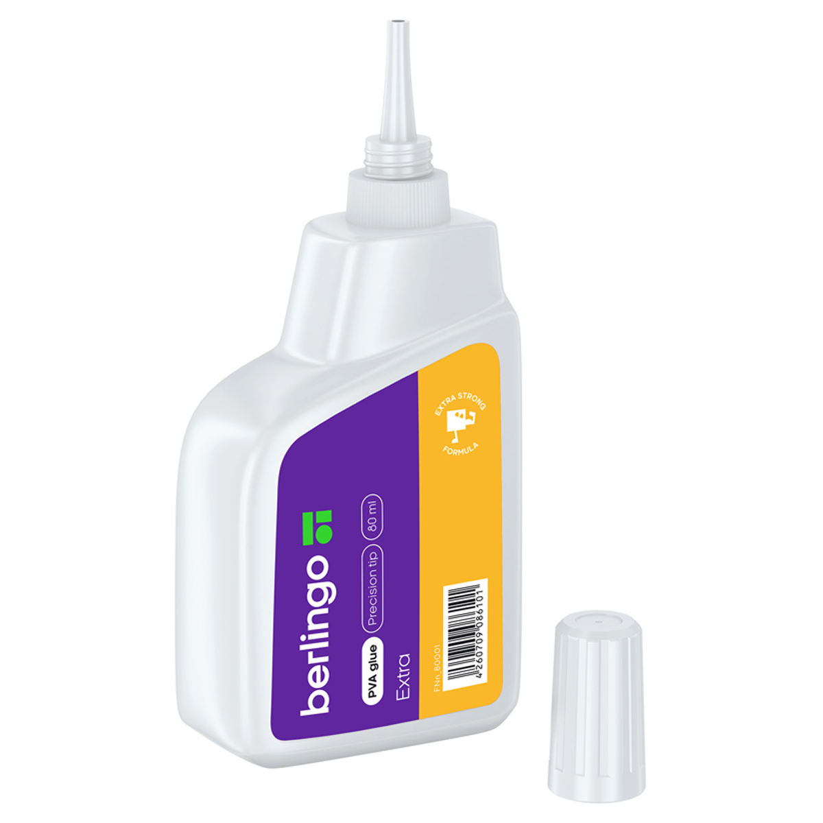 Клей ПВА Berlingo предназначен для склеивания бумаги, картона, дерева, стекла, кожи, ткани, керамики. Экстрасильный клей может использоваться как в канцелярских целях, так и в быту. Объем 80 мл. Имеет групповую упаковку - картонный дисплей бокс на 12 шт. Клей морозостойкий. Выдерживает температуру до -40°С, сохраняя при этом однородность текстуры и потребительские свойства. Удобный флакон с дозатором, который обеспечивает экономичный расход клея и точное нанесение.