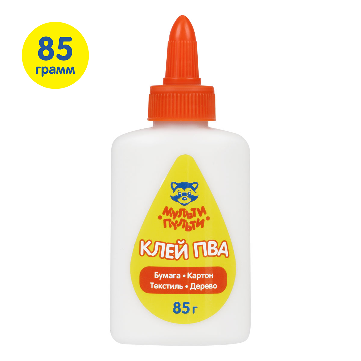 Клей ПВА «Мульти-Пульти» серии «Енот на Кубе» белого цвета подходит для создания поделок и работы на уроках труда. Он предназначен для склеивания бумаги, картона, дерева и ткани. Клей с улучшенным составом концентрированный, равномерно наносится на поверхность и надёжно скрепляет. Больший сухой остаток, который образуется после испарения жидких компонентов, позволяет с лёгкостью склеивать даже тяжелые материалы.