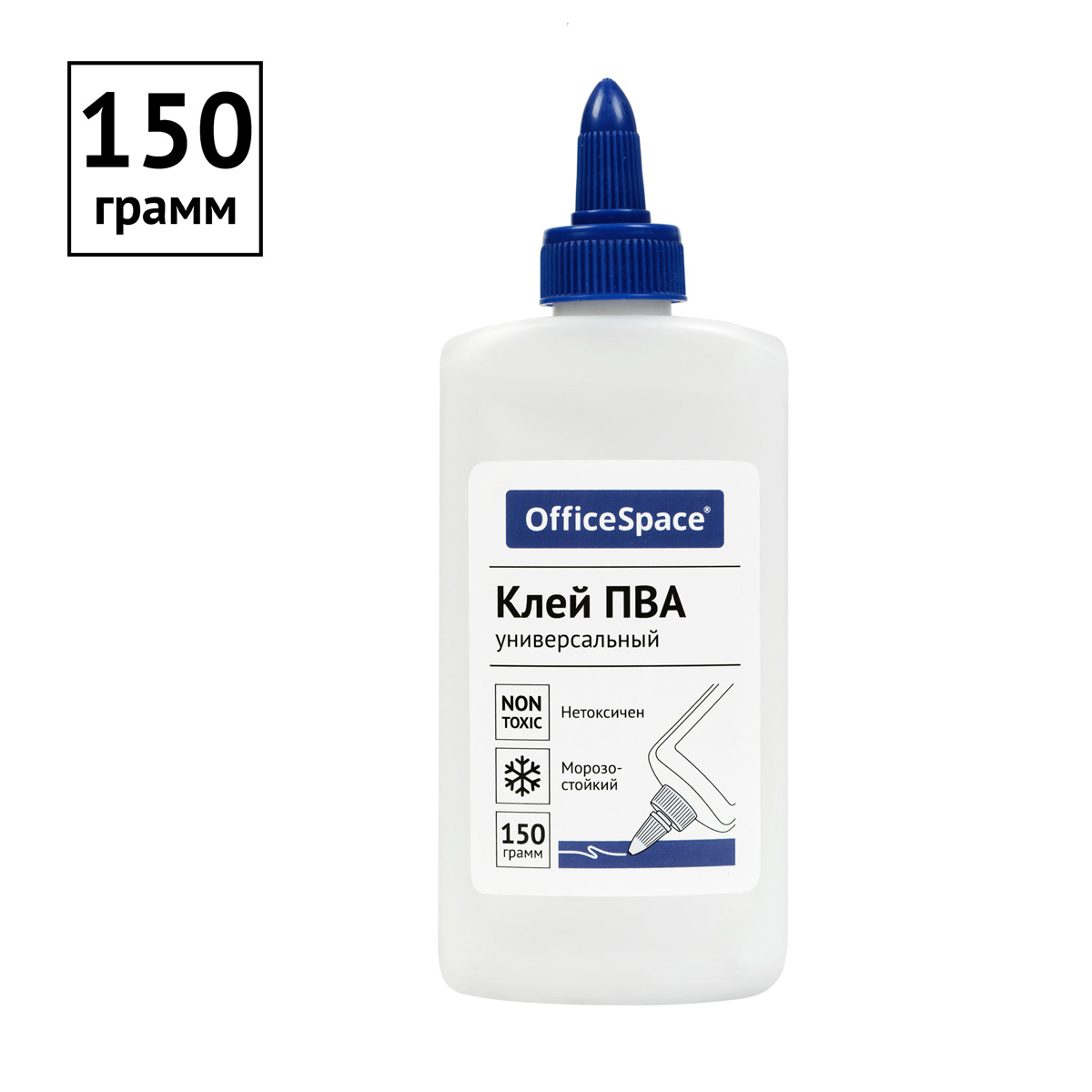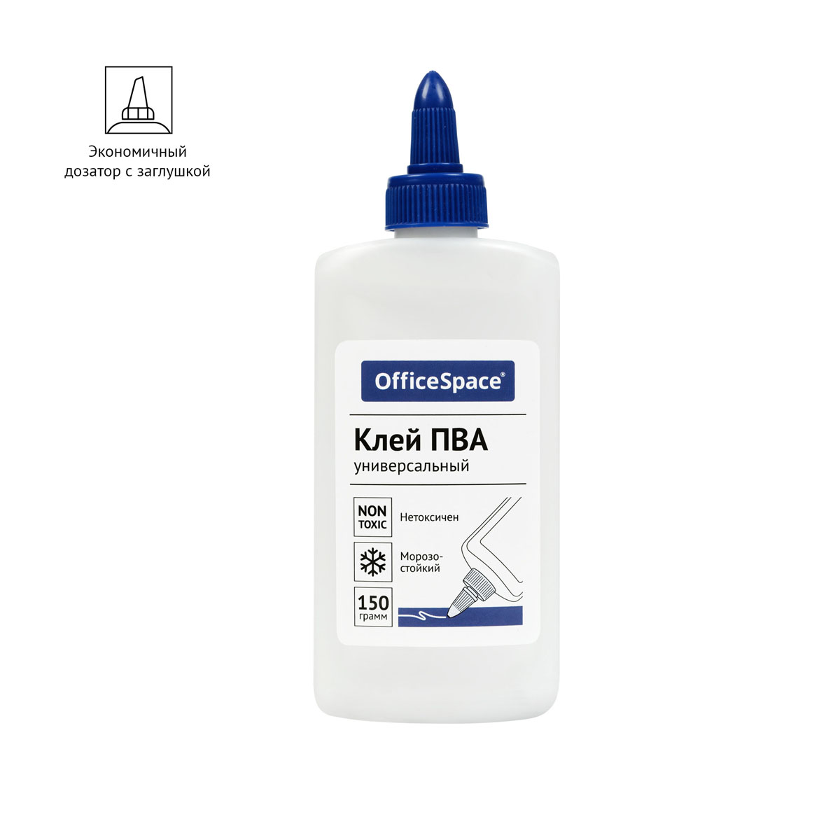 Клей ПВА OfficeSpace предназначен для склеивания бумаги, картона, дерева и ткани. Все нетто – 150 граммов. Дозатор с заглушкой контролирует количество клея, необходимое для каждой склейки. Выдавить из тюбика сразу слишком много не получится.<br/>Клей морозостойкий. Рекомендуется хранить при температуре выше 0°С. Клей упакован в дисплей бокс по 12 штук.<br/>• Вес: 150 г;<br/>• Морозоустойчивость: да;<br/>• Аппликатор: дозатор.