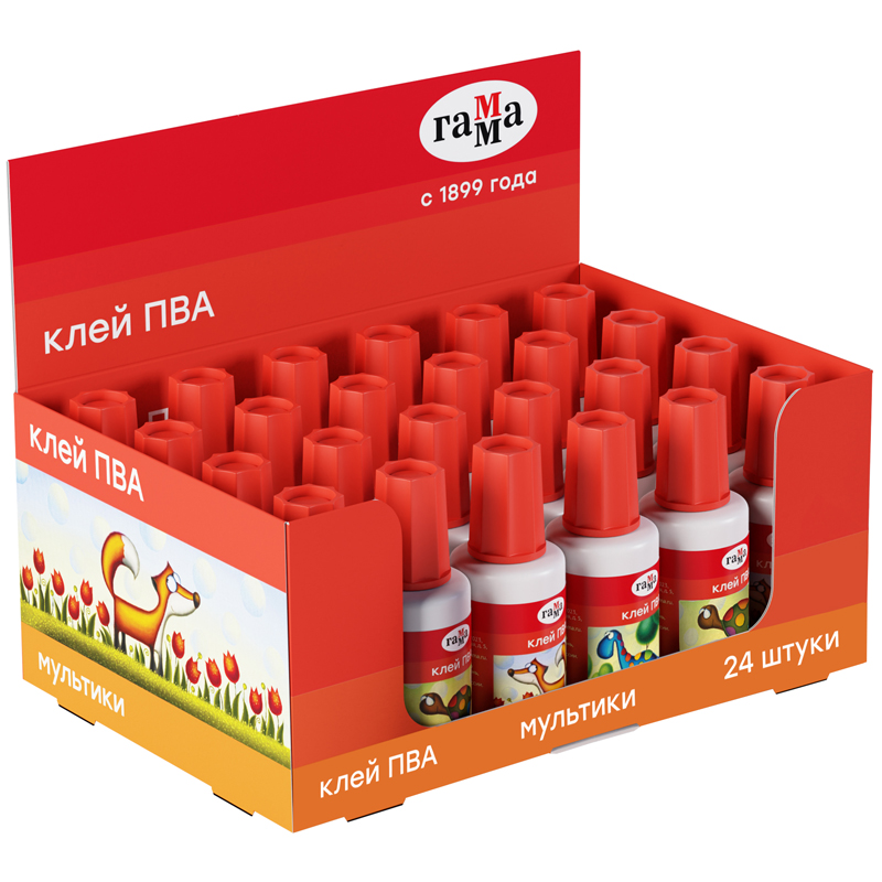 Клей ПВА канцелярский с кисточкой (Тося, Бося, Зося) (24 штуки в коробе)