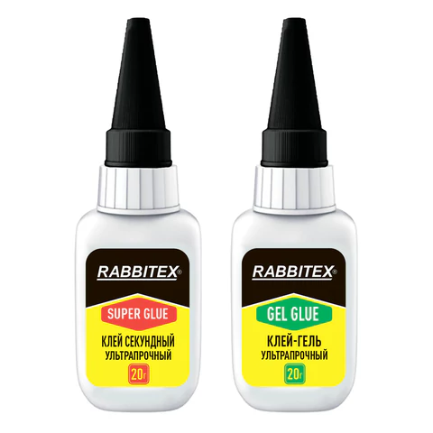 Клей-гель + суперклей секундный УЛЬТРАПРОЧНЫЙ, МАКСИМАЛЬНЫЙ ОБЪЕМ, набор 2х20 грамм, RABBITEX (РАББИТЕКС) "ДВА СЛОНА", 609806