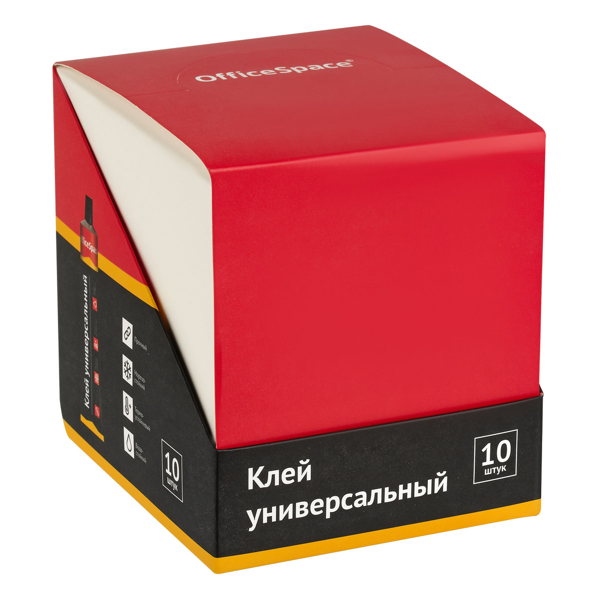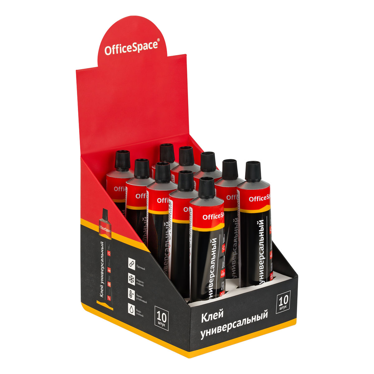 Универсальный клей OfficeSpace идеально подходит для склеивания материалов: резина, кожа, ткань, дерево, пластмасса, картон, ДСП, ДВП, фанера и др.<br/>Объем, мл: 30<br/>Упаковка ед. товара: туба;<br/>Назначение: универсальный<br/><br/>Способ применения: 1. Зачистить и обезжирить склеиваемые поверхности. 2. Нанести клей тонким слоем на обе поверхности. 3. Выждать пару минут, затем сильно прижать поверхности друг к другу. 4. Пользоваться склеенным изделием рекомендуется через сутки.<br/><br/>Меры предосторожности: Беречь от детей и животных! Пары клея не вдыхать! Склеивание производить в хорошо проветриваемом помещении. В случае попадания в глаза или на кожу промыть водой с мылом, при необходимости обратиться к врачу. Не применять для изделий, контактирующих с пищей.