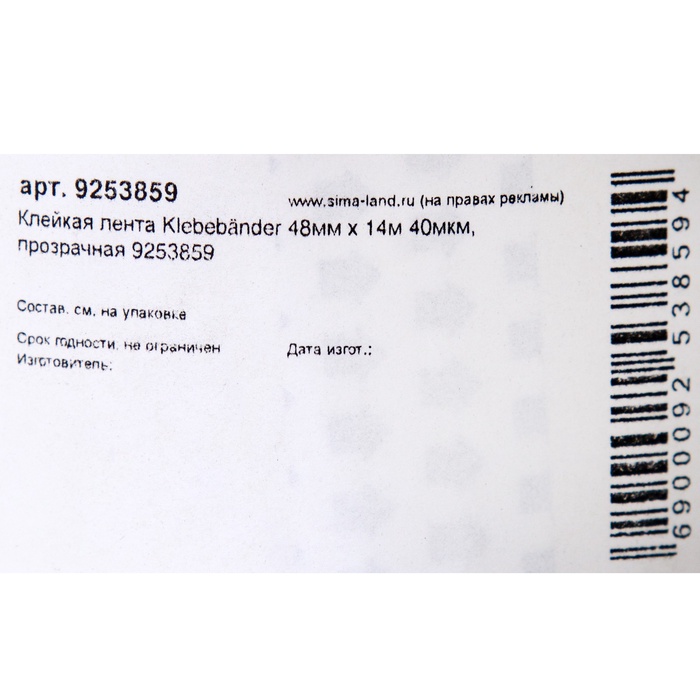 Скотч 72ммх66м 43мкм прозр. СП 75-66-43