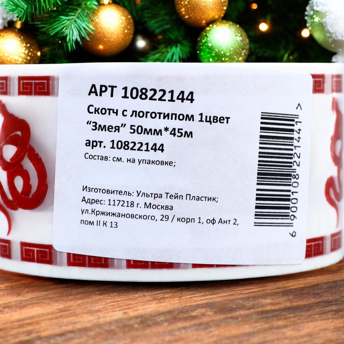 Скотч новогодний с логотипом "Новогодняя Змея" 48*45м 45мкм