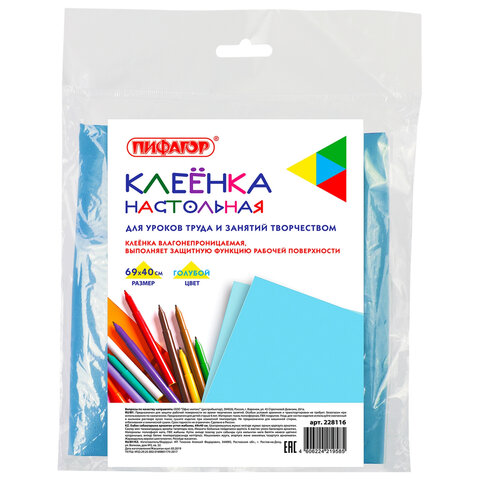 Настольная клеёнка ПИФАГОР предназначена для защиты рабочей поверхности во время творческих занятий как в школе, так и дома. Предусмотрена для многоразового использования.