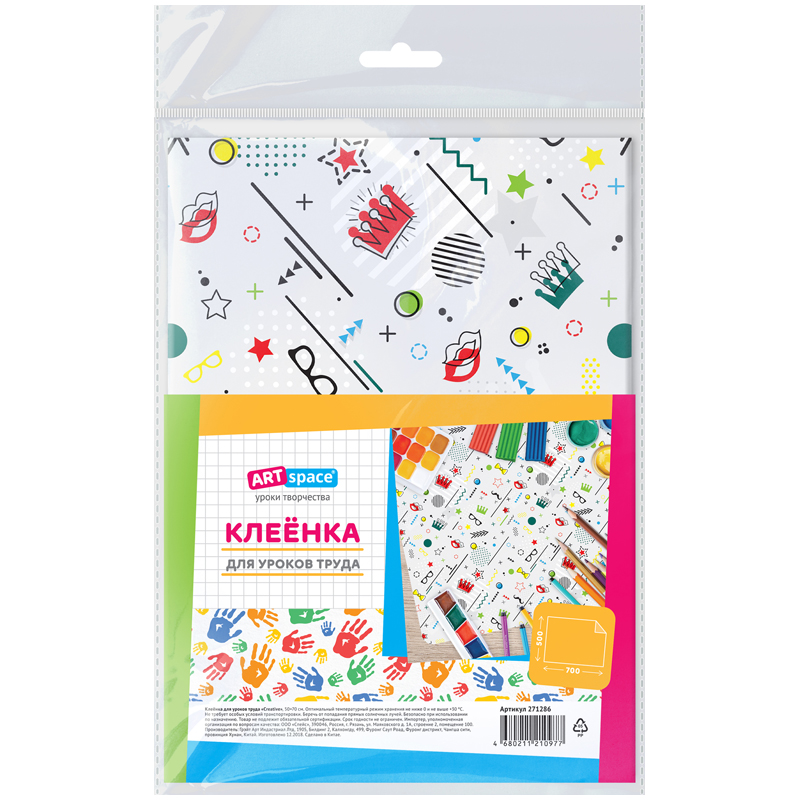 Клеенка ArtSpace является незаменимой составляющей для уроков труда и творчества, размер 50*70 см позволяет покрыть большую площадь рабочей поверхности, предотвращая попадание краски, пластилина, клея и других средств, защищая от грязи, механических и прочих повреждений.<br/>Ультрасовременный дизайн позволит создать яркую творческую атмосферу.