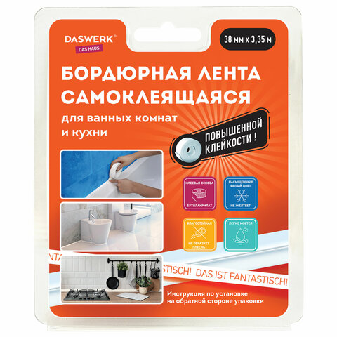 Бордюрная лента DASWERK используется в бытовых условиях для герметизации стыков и швов между раковиной, ванной, столешницами и прилегающими к ним стенами.