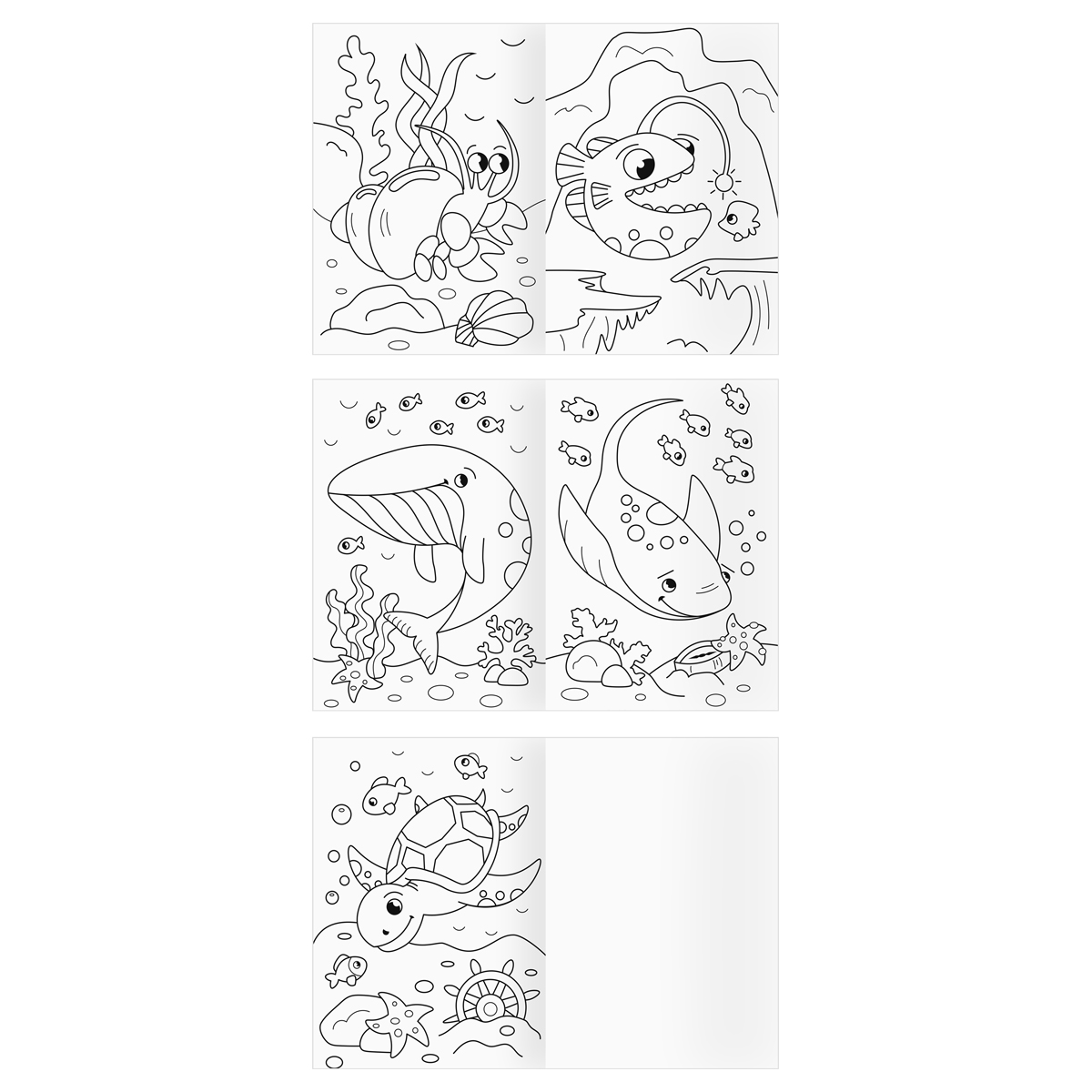 Раскраски «ТРИ СОВЫ» – это не только интересное, но и полезное занятие для ребенка. Задача ребенка раскрасить разными цветами чёрно-белое изображение, не выходя за контуры. Внутренний блок – 8 страниц плотной бумаги формата А4, которая подходит для раскрашивания карандашам, фломастерами или красками. При раскрашивании ребёнок учится правильно держать ручку, различать цвета и их оттенки. Раскраски помогают развить такие качества, как усидчивость и аккуратность, а также фантазию и воображение. В запайке 4 разных раскраски на темы: Домашние животные, Дикие животные, Лесные животные и Морские жители. Эти изображения точно понравятся Вашему ребёнку.