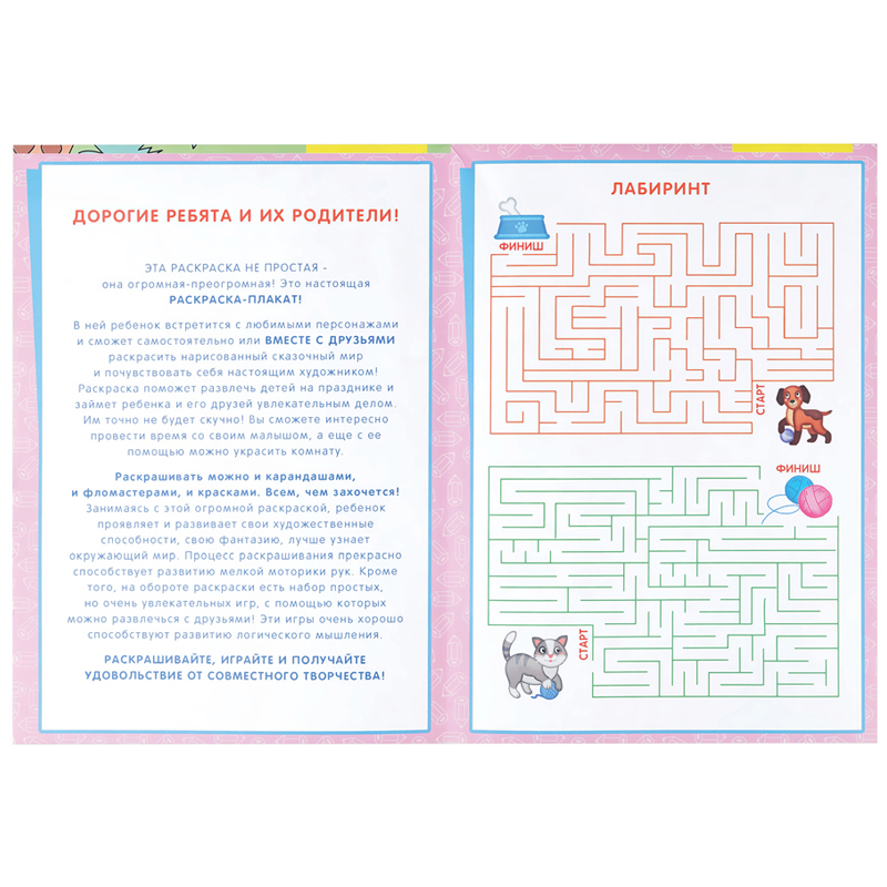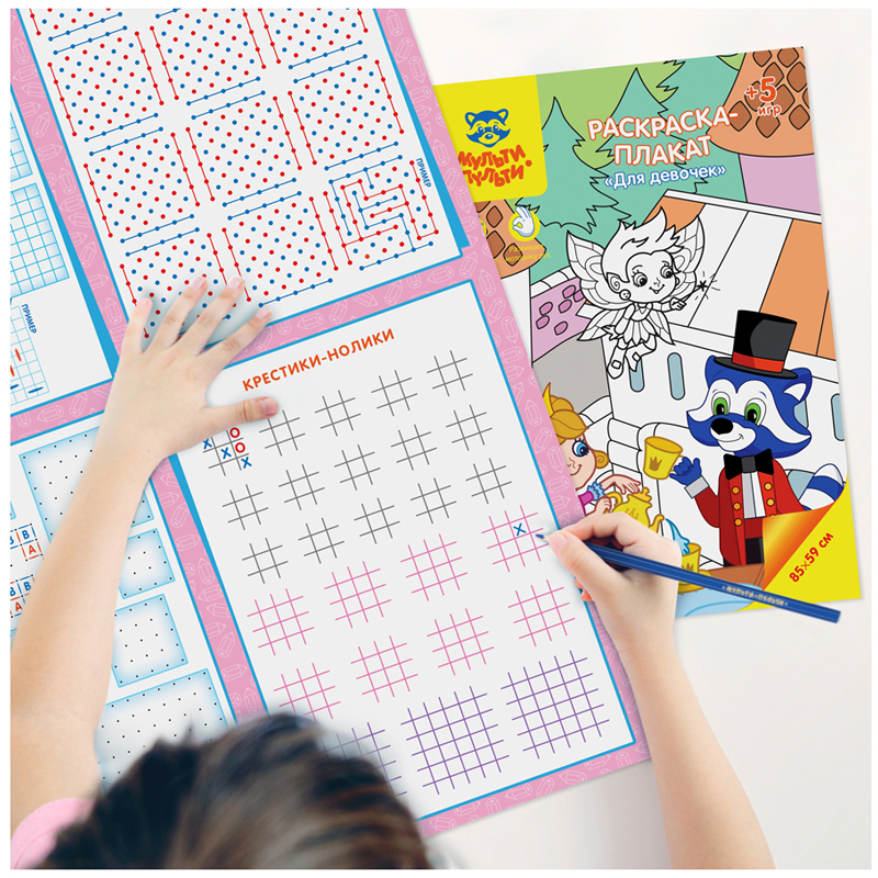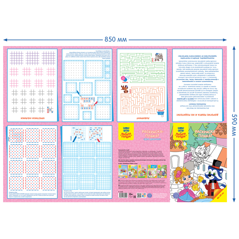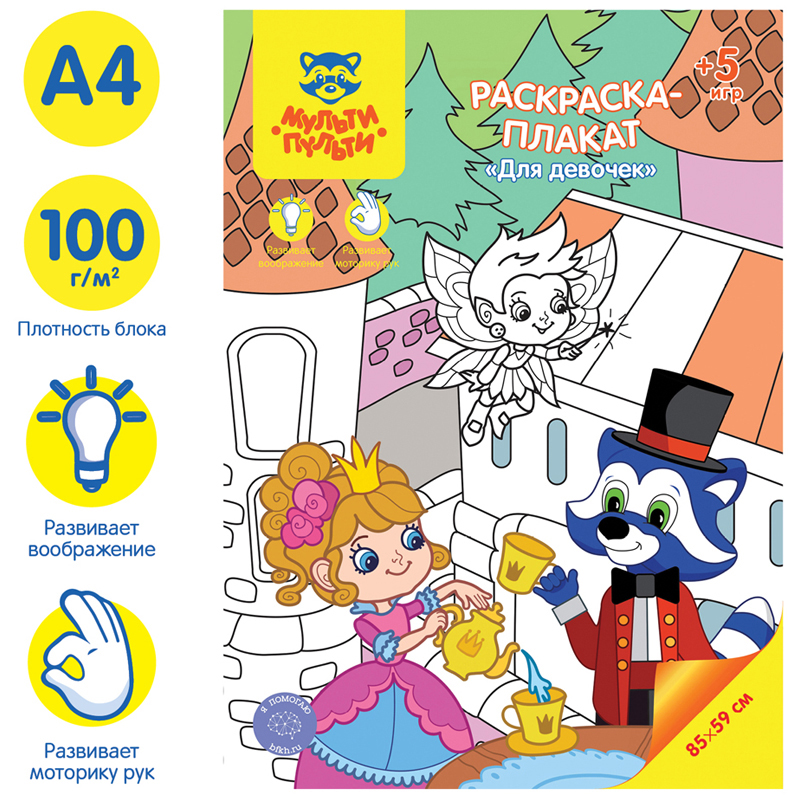 Раскраска-плакат «Мульти-Пульти» – это настоящая находка для тех, кто хочет увлечь своего ребёнка на долгое время. Размер в разложенном виде – 850*590 мм. Такие раскраски полезны для развития мелкой моторики и воображения ребёнка с раннего возраста. Раскраска-плакат впишется в детские утренники и праздники. Малыши научатся подбирать цвета и комбинировать их. Плотная бумага подходит для раскрашивания цветными ручками, карандашами, фломастерами, маркерами и даже красками. На обратной стороне вы найдете 5 увлекательных игр.