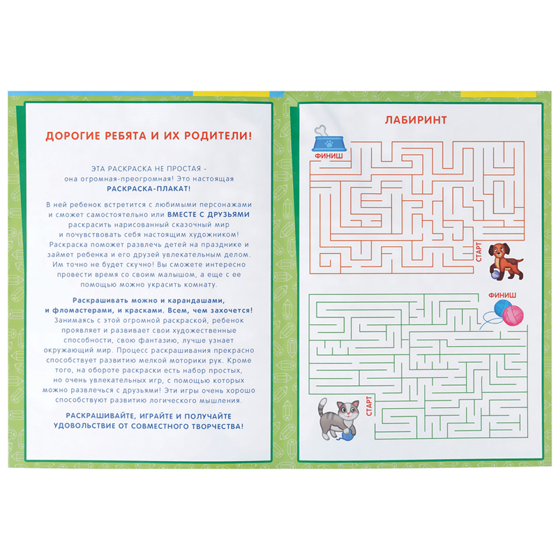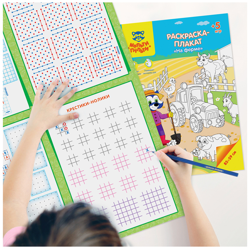 Раскраска-плакат «Мульти-Пульти» – это настоящая находка для тех, кто хочет увлечь своего ребёнка на долгое время. Формат: А4. Размер в разложенном виде – 850*590 мм. Такие раскраски полезны для развития мелкой моторики и воображения ребёнка с раннего возраста. Раскраска-плакат впишется в детские утренники и праздники. Малыши научатся подбирать цвета и комбинировать их. Плотная бумага подходит для раскрашивания цветными ручками, карандашами, фломастерами, маркерами и даже красками. На обратной стороне вы найдете 5 увлекательных игр.