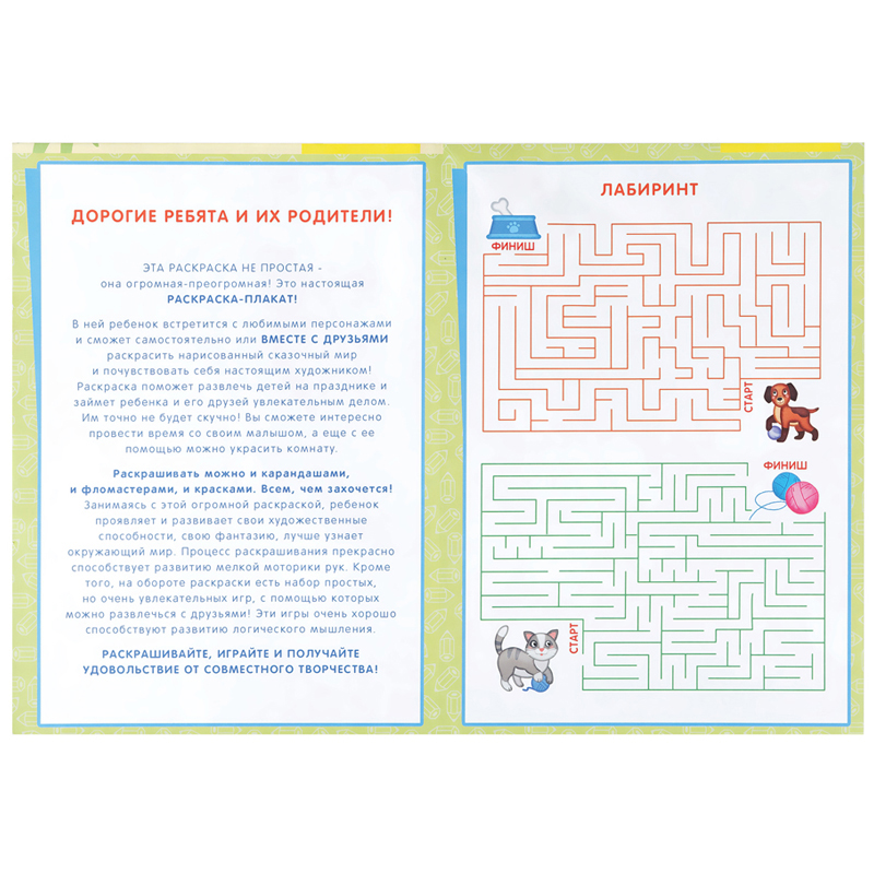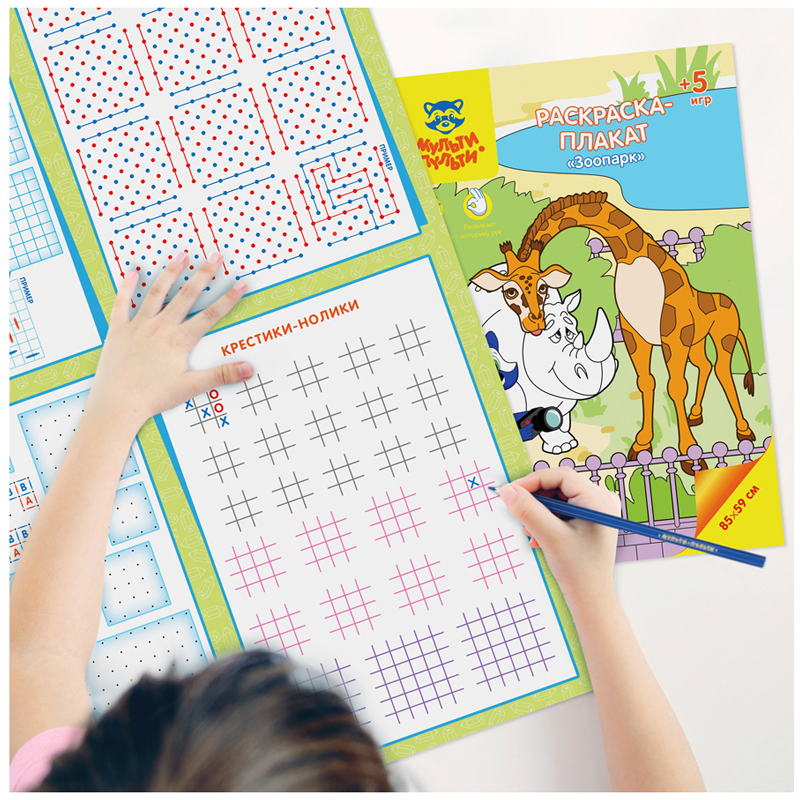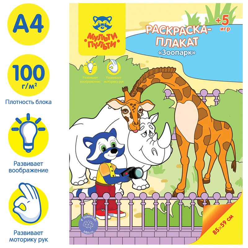 Раскраска-плакат «Мульти-Пульти» – это настоящая находка для тех, кто хочет увлечь своего ребёнка на долгое время. Размер в разложенном виде – 850*590 мм. Такие раскраски полезны для развития мелкой моторики и воображения ребёнка с раннего возраста. Раскраска-плакат впишется в детские утренники и праздники. Малыши научатся подбирать цвета и комбинировать их. Плотная бумага подходит для раскрашивания цветными ручками, карандашами, фломастерами, маркерами и даже красками. На обратной стороне вы найдете 5 увлекательных игр.