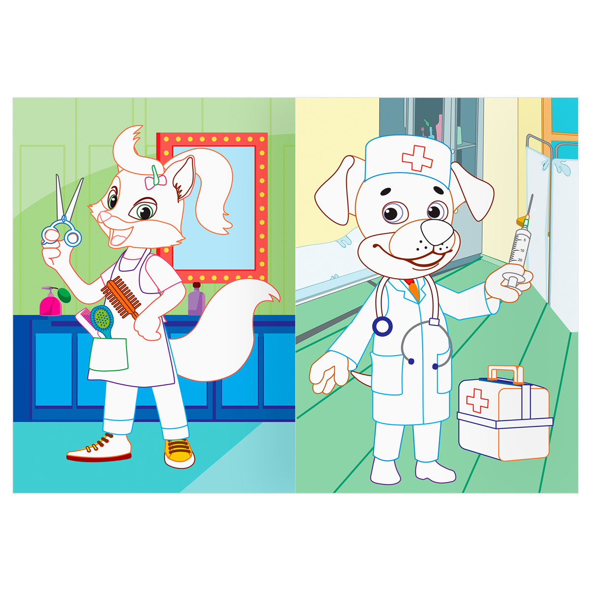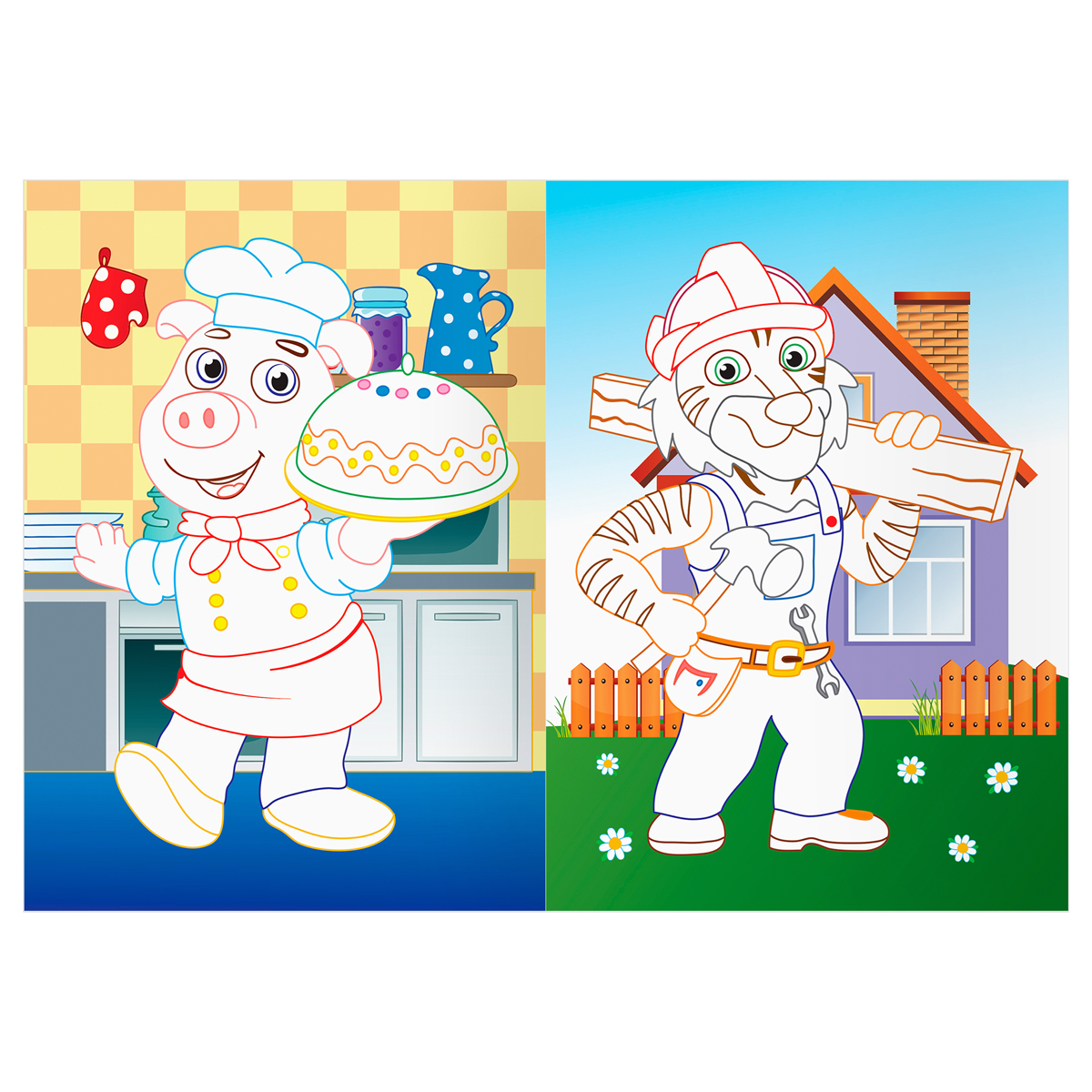 Раскраска с цветным фоном «ТРИ СОВЫ» «Профессии» – отличный помощник в развитии детей младшего и среднего возраста. Раскраска формата А5 (145*200 мм) представлена с цветными страницами и белыми элементами для раскрашивания. Цветные контуры подскажут, каким цветом ребёнку закрасить изображение. Картинки с животными, которые изучают различные профессии, понравятся как девочкам, так и мальчикам. Количество страниц – 8. Внутренний блок на скрепке – офсетная бумага 100 г/м2. Ориентация – вертикальная. Обложка изготовлена из мелованной бумаги. Раскраски – это не только интересное, но и полезное занятие. При раскрашивании ребёнок тренирует руку держать карандаш, фломастер или кисточку, учится различать цвета и оттенки, развивает фантазию и воображение. Раскраски также помогают развить в нём усидчивость и аккуратность. Изделие подходит для детей от 2 лет.