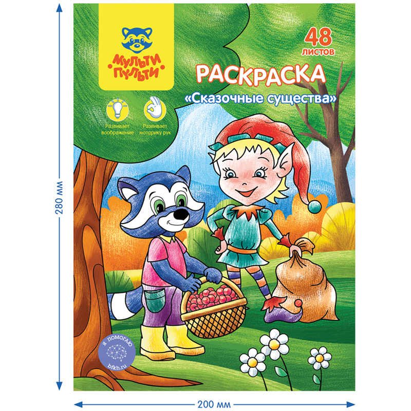 Раскраска бренда «Мульти-Пульти» – незаменимый помощник в творческом развитии ребёнка. Изделие серии «Сказочные животные» формата А5 и размера 165*235 мм состоит из 48 отдельных листов офсетной бумаги плотностью 100 г/кв. м, что соответствует техническому регламенту ТР ТС 007/2011 «О безопасности продукции, предназначенной для детей и подростков». Листы упакованы в картонную папку. Благодаря отдельным листам раскрашивать сюжеты и персонажей станет гораздо удобнее. Также можно часть взять с собой в дорогу, в гости или распределить листы с разными сюжетами среди нескольких детей, будь то дома, в детском саду или начальных классах.