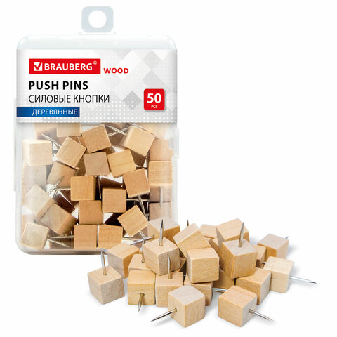 Силовые кнопки-гвоздики BRAUBERG WOOD, деревянные (шарики), 50 штук, 10мм, 272761