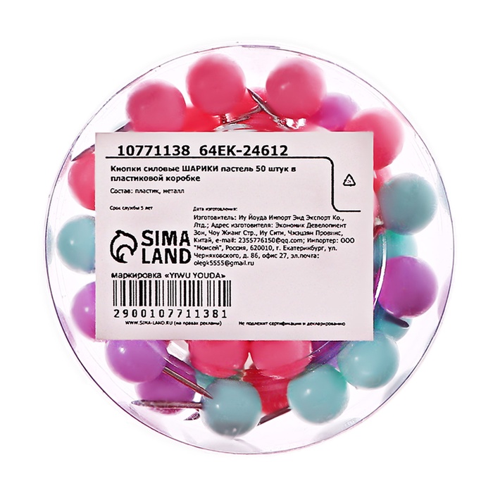 Кнопки силовые ШАРИКИ цветные 50 штукв пластиковой коробке