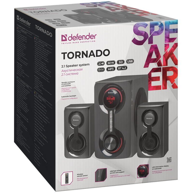 Акустическая 2.1 система Tornado 60Вт, Bluetooth, FM/MP3/SD/USB DEFENDER