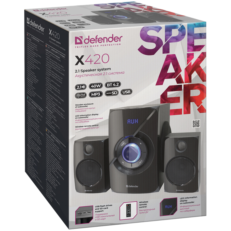 Акустическая 2.1 система X420 40Вт, Bluetooth, FM/MP3/SD/USB DEFENDER