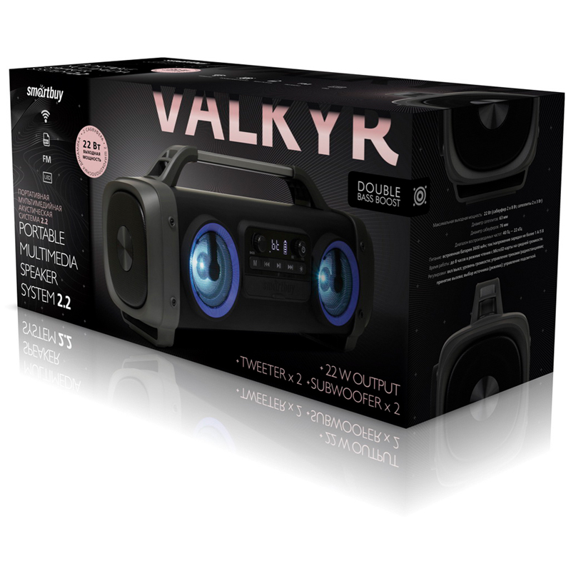 Лучший звук в линейке Smartbuy благодаря 4(!) динамикам - 2 широкополосным и 2 сабам <br/>Полный набор функций: Bluetooth, AUX, FM, MP3-плеер <br/>Большая удобная ручка для переноски<br/>LED-экран<br/>Подсветка