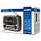 Радиоприемник компактного размера и имеет в комплекте удобный ремешок для переноски. Модель имеет «теплый ламповый» дизайн и представлена в двух цветах: черном и красном.