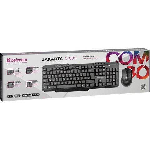 DEFENDER Jakarta C-805 - беспроводной набор с радиусом действия до 10 метров легкий и простой в установке, для работы не нужны драйверы. Удобное расположение мультимедийных клавиш и симметричная форма мыши позволят комфортно выполнять нужные задачи.
