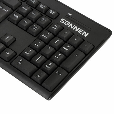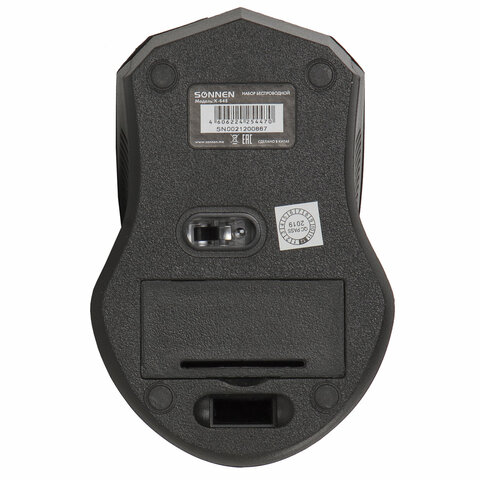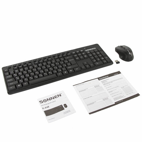 SONNEN K-648 — классический стильный комплект, сочетающий в себе функциональность, долговечность и исключительное удобство в работе. АДАПТЕР ЛЕЖИТ В ОТСЕКЕ ДЛЯ БАТАРЕЕК КЛАВИАТУРЫ!