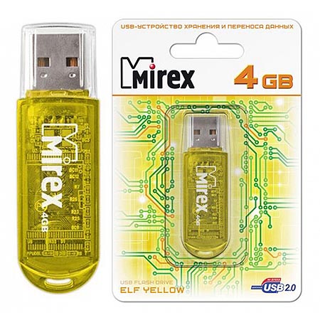 Флеш-диск " Mirex " 4GB Elf желтый USB 2.0