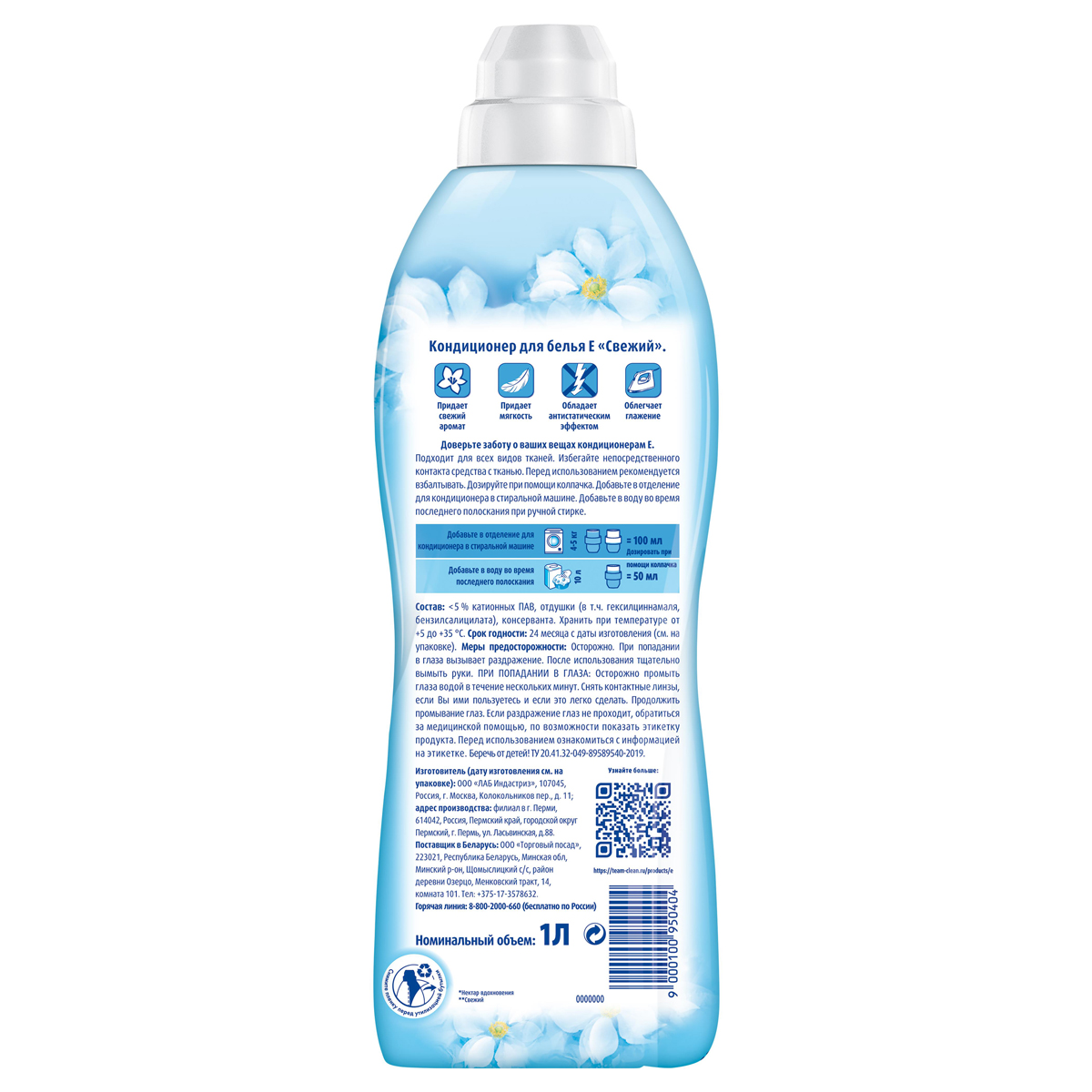 - Кондиционер E Fresh облегчает глажку и обладает антистатическим эффектом.