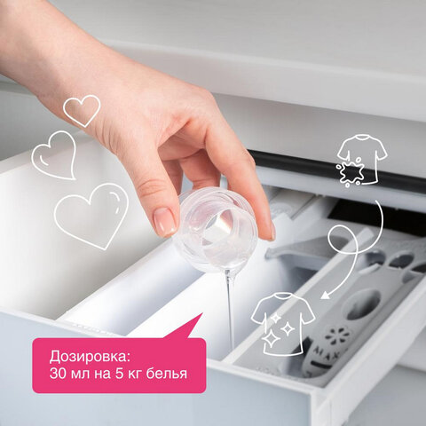 На 5 кг белья достаточно добавить 30 мл кондиционера. Средство заливается в специальный отсек стиральной машины для использования во время последнего полоскания.