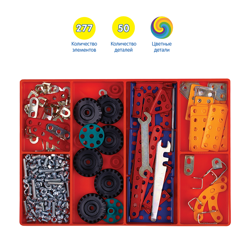 Конструкторы с цветными элементами Мульти-Пульти разработаны для детей старшего дошкольного и младшего школьного возрастов. Идеально подходят для занятий на уроках труда. Предназначены для комплексного развития детей:<br/>• способствуют формированию сосредоточенности и внимательности;<br/>• развивают логику, пространственное мышление, фантазию;<br/>• развивают моторику рук.<br/>Ваш ребенок получит огромное удовольствие в процессе сборки конструктора, почувствовав себя начинающим инженером. Для детей 6-12 лет.<br/>В наборе 277 элементов. Количество моделей для сборки - 50.<br/>Для удобства хранения все элементы конструктора размещены в пластиковой коробке с делениями.